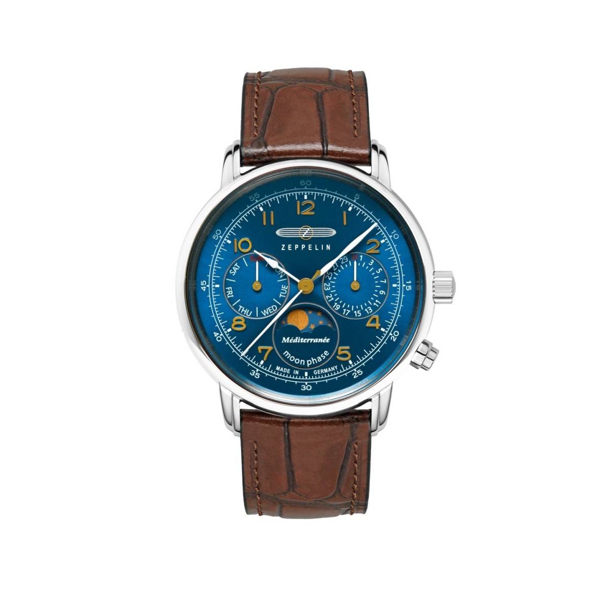 Zeppelin Damenuhr Quarz mit Mondphase und Lederarmband